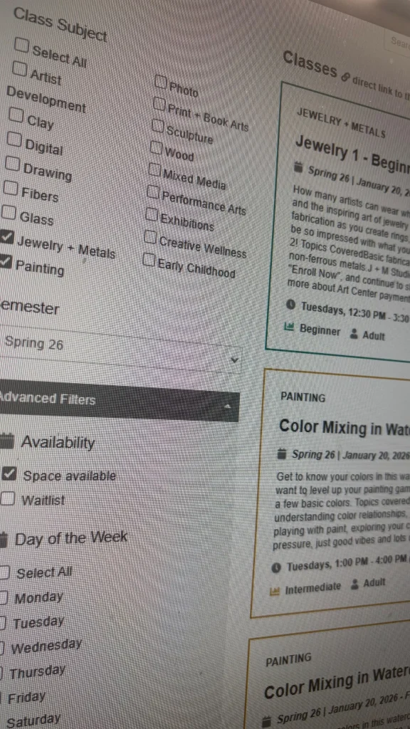 This community-focused nonprofit offers a full calendar of art classes—painting, sculpture, photography, you name it. The problem? Their course catalog and registration were handled through a third-party platform, meaning users had to leave the main website just to explore the course offerings. The nonprofit’s branding disappeared, the UX consistency dropped off, and many visitors never returned.